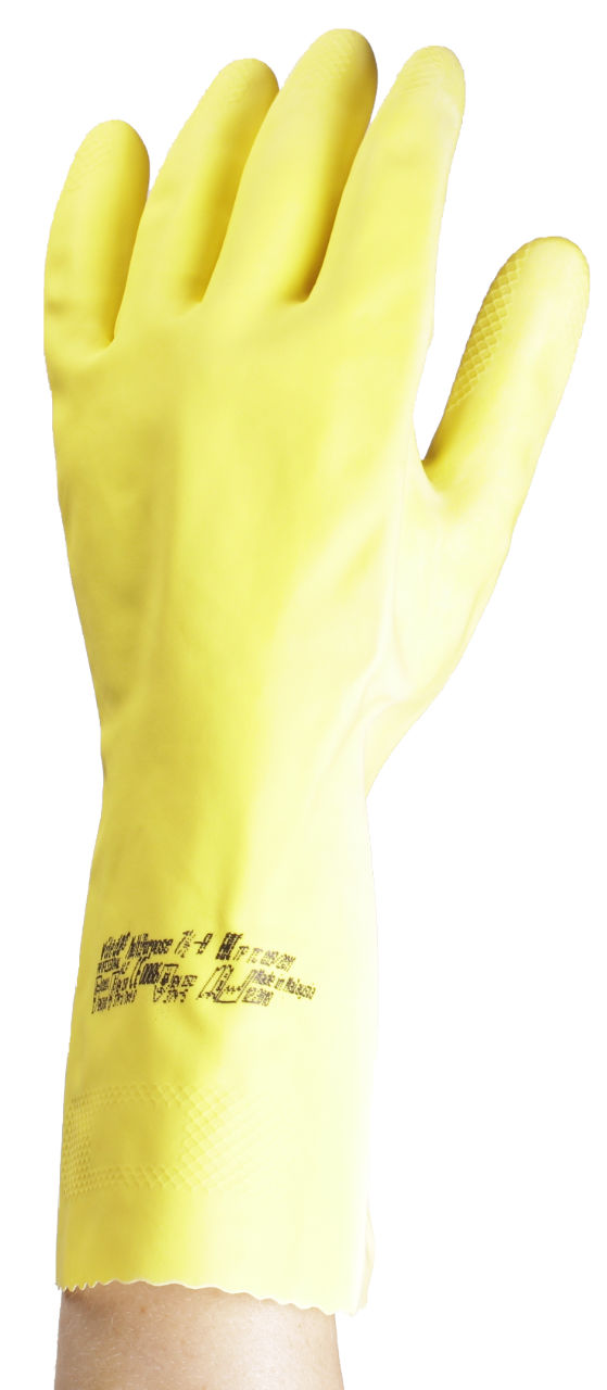 Diese Allzweckhandschuhe aus Natur-Latex schützt Ihre Hände zuverlässig bei allgemeinen Reinigungsarbeiten. Im Gesundheitswesen oder im Hotel und Gaststättenbereich kann er bedenkenlos eingesetzt werden. Ideal ist er für den Gebrauch mit verdünnten Reinigungs- und Desinfektionsmitteln, wobei er sowohl in trockenen und nassen Umgebungen und auch bei der Lebensmittelverarbeitung eingesetzt werden kann. Er hat eine gute Beständigkeit gegen die Chemikalien der meisten Reinigungsprodukte.