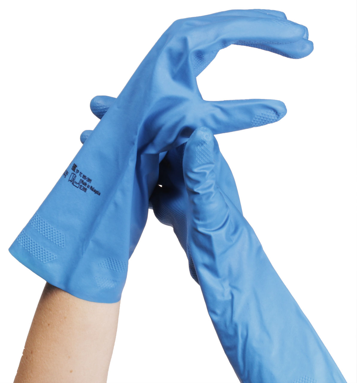 Dieser latexfreie Nitrilhandschuh schützt Ihre Hände zuverlässig, bei allgemeinen Reinigungsarbeiten, im Gesundheitswesen oder im Hotel und Gaststättenbereich kann er bedenkenlos eingesetzt werden. Ideal ist er für den Gebrauch mit verdünnten Reinigungs- und Desinfektionsmitteln, wobei er sowohl in trockenen und nassen Umgebungen und auch bei der Lebensmittelverarbeitung eingesetzt werden kann.